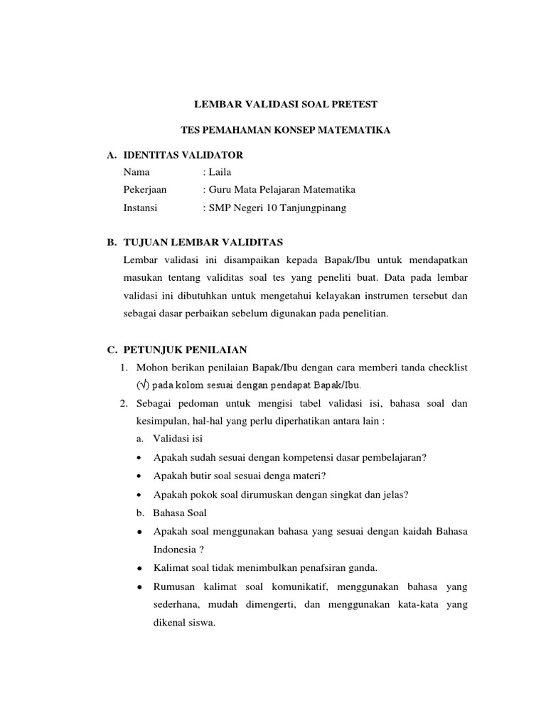 Lembar Validasi Ahli Materi Pdf Free Download from docplayer.info We did not find results for: Check spelling or type a new query. Maybe you would like to learn more about one of these? Contoh lembar validasi bahan ajar.